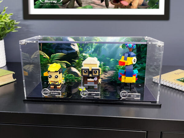 Bring the spirit of Up into your collection with a display case designed especially for the Carl, Russell & Kevin LEGO® BrickHeadz set. Featuring a vivid UV-printed backdrop inspired by Paradise Falls, this case transforms your figures into a scene straight from the movie.