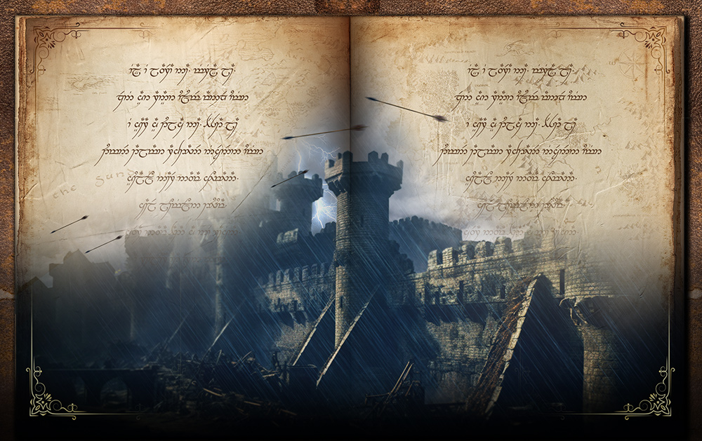 Recreate the epic LOTR: The Fellowship of the Ring scene inspired by the battle at Helm's Deep UV printed background.