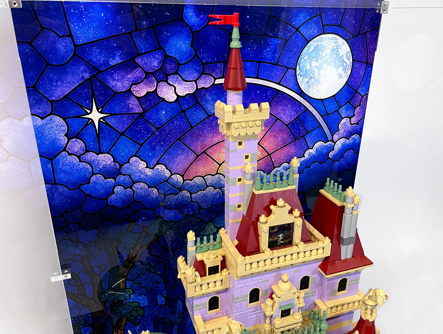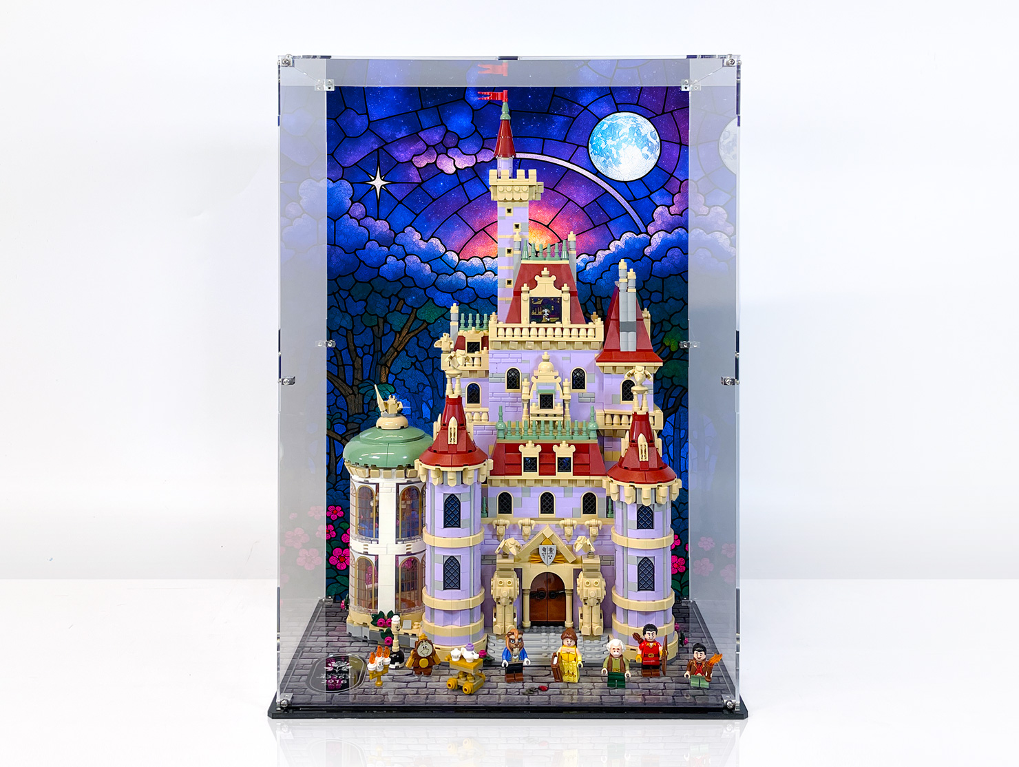 Transform your LEGO® Disney Beauty and the Beast Castle into a true showpiece with this deluxe display case. With the option to add a breathtaking UV-printed stained glass window background and themed base, this case doesn’t just protect your build – it completes the story.