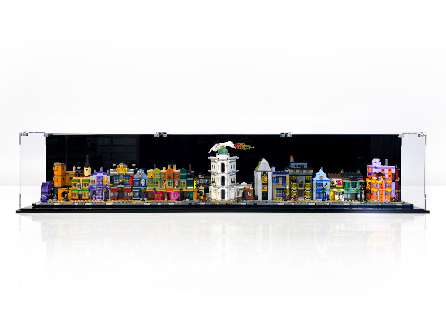 Showcase the magic of Diagon Alley™ with this premium display case, designed to perfectly house and protect your LEGO® 75978 set. This case includes a stunning UV-printed background that brings the bustling wizarding street to life, adding depth, atmosphere, and an immersive display experience.