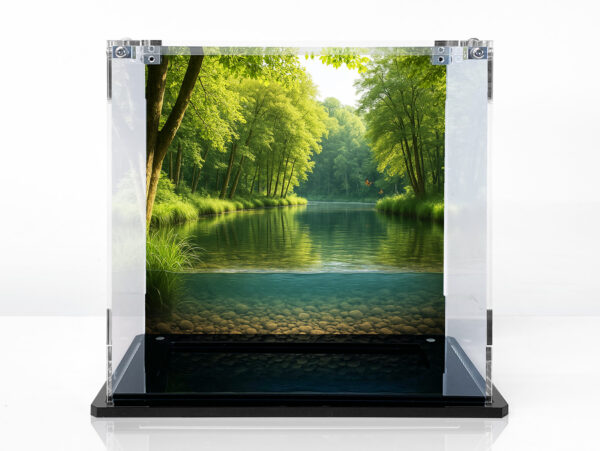 Our beautiful display case reveals the fateful moment beneath the River Anduin, where Sméagol™ and Déagol™ first discover the One Ring. Set against a striking split scene of shimmering surface and shadowed depths, it captures the instant where wonder gives way to destiny.