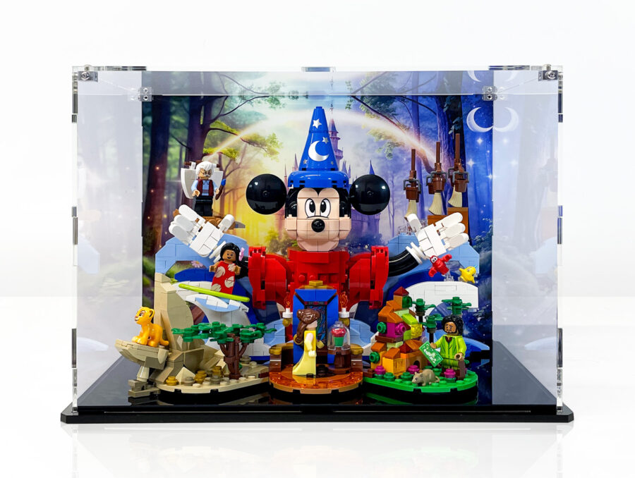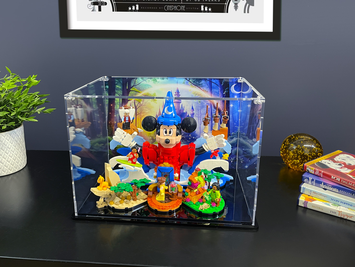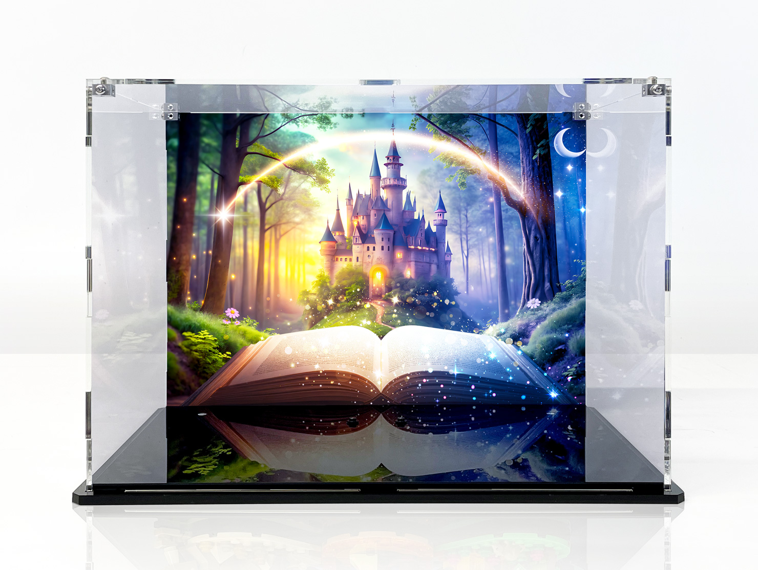 Show off your LEGO® Magic of Disney set with this premium acrylic display case. Featuring a vibrant storybook-style printed backdrop, it turns your build into a fairytale scene while keeping dust and damage out. Quick to assemble, crystal-clear, and built to impress.