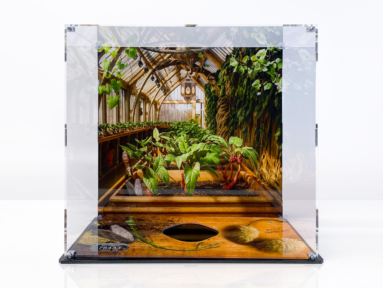 Bring the magic of Herbology to life. Inspired by Professor Sprout’s Greenhouse from Harry Potter and the Chamber of Secrets, this case transforms a simple build into a centrepiece. The optional printed base and background add layers of atmosphere, echoing the rustic greenhouse setting. With your Mandrakes at the heart of the scene, the case captures the charm and whimsy of one of Hogwarts’ most memorable lessons.