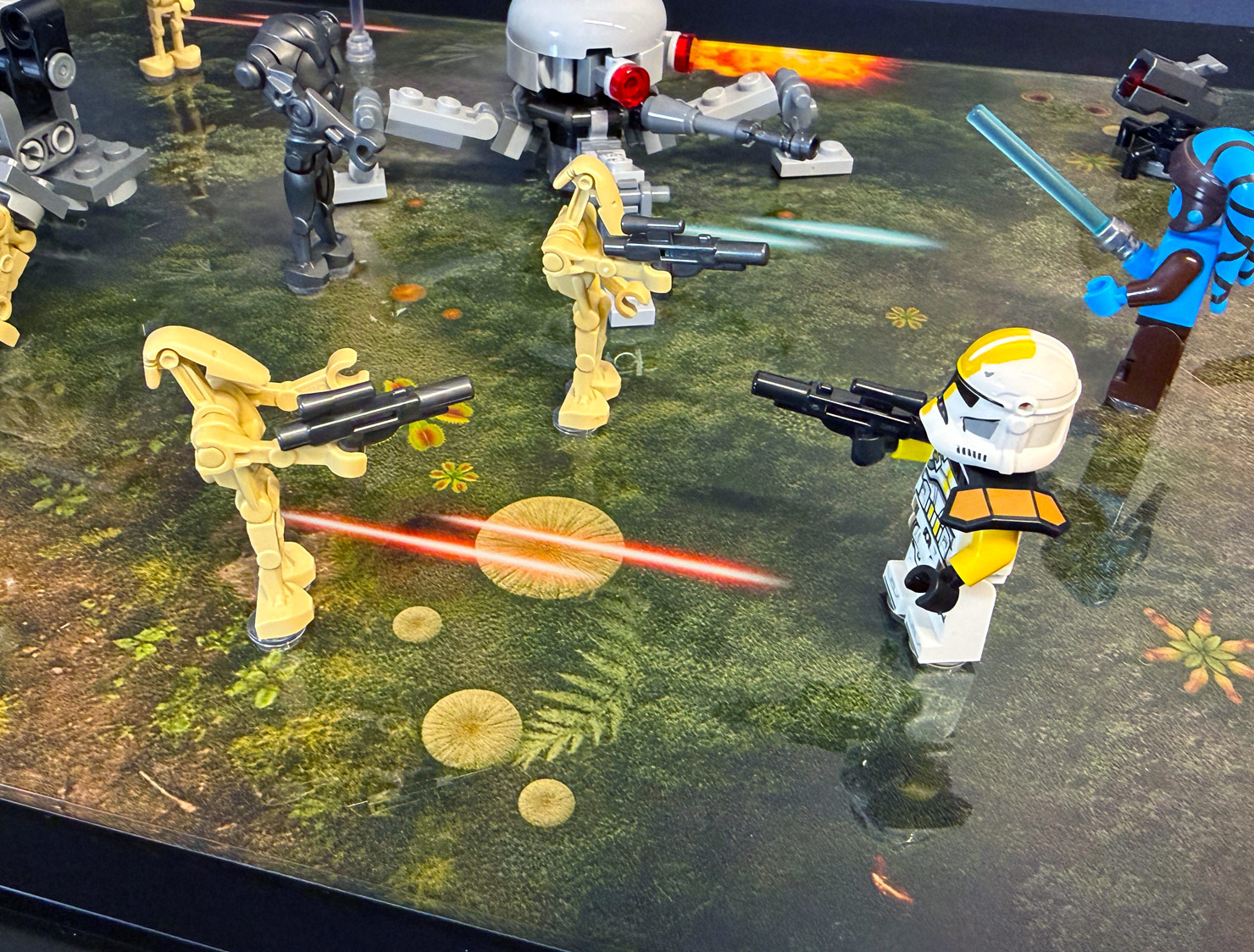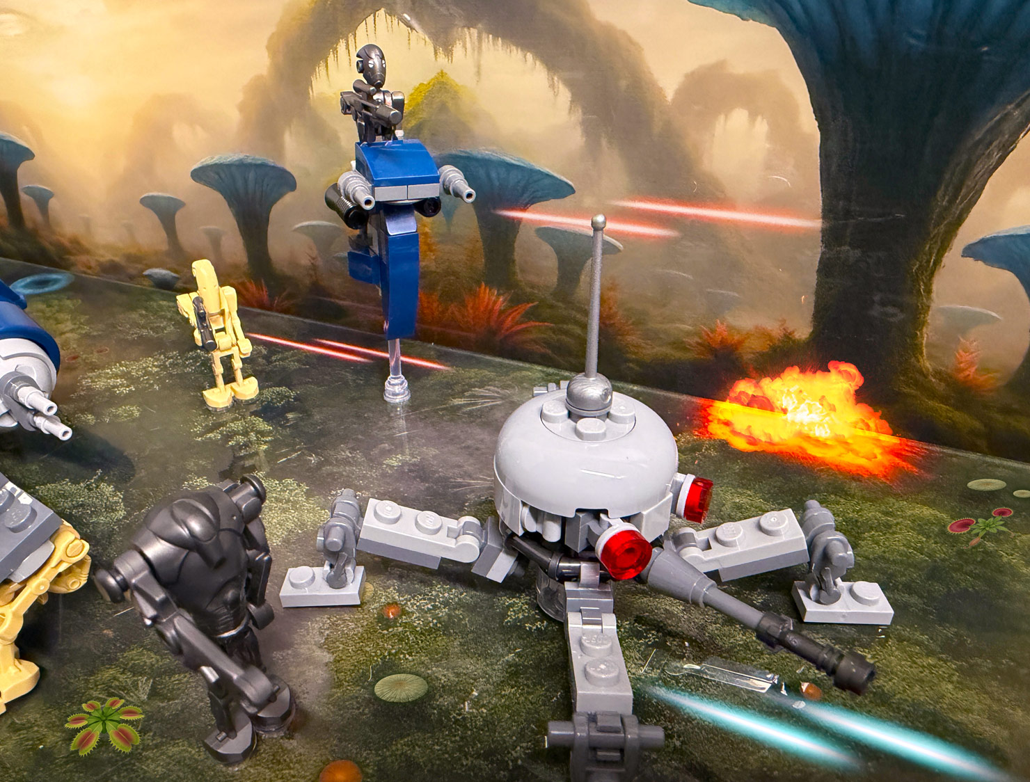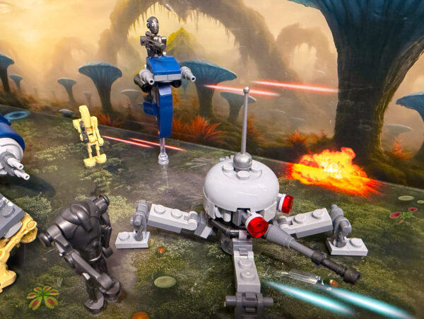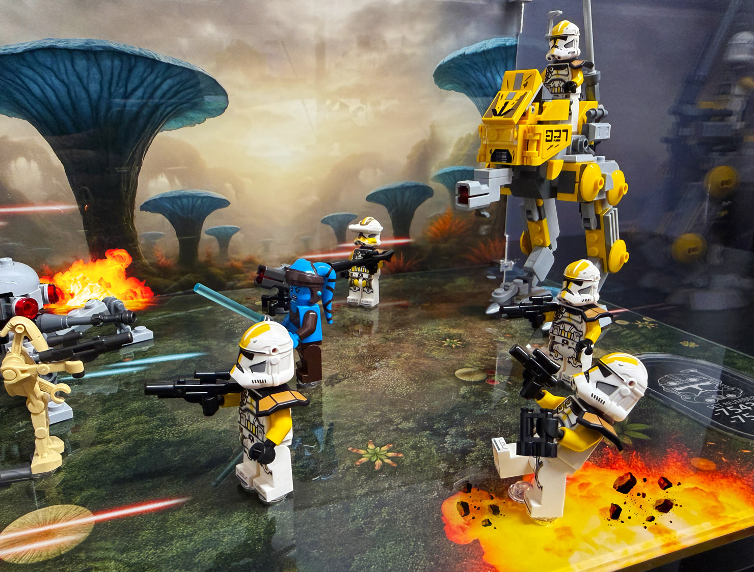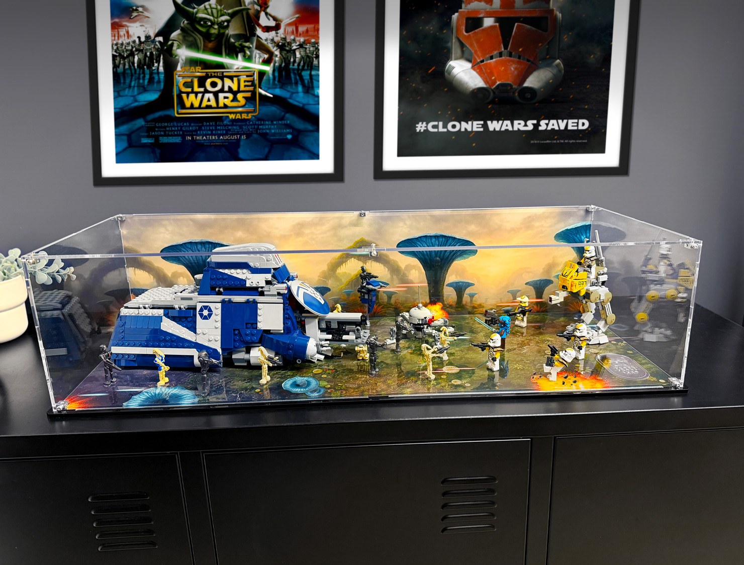 Bring the alien world of Felucia to life with this UV printed display case, designed specifically for the LEGO® Star Wars™ Battle of Felucia Separatist MTT & 327th Star Corps Clone Troopers™ Battle Pack sets. Inspired by the planet’s strange, plant-covered landscape, the printed background and base recreate the surreal battlefield where the Clone Wars raged, surrounding your model with rich colour and organic detail.