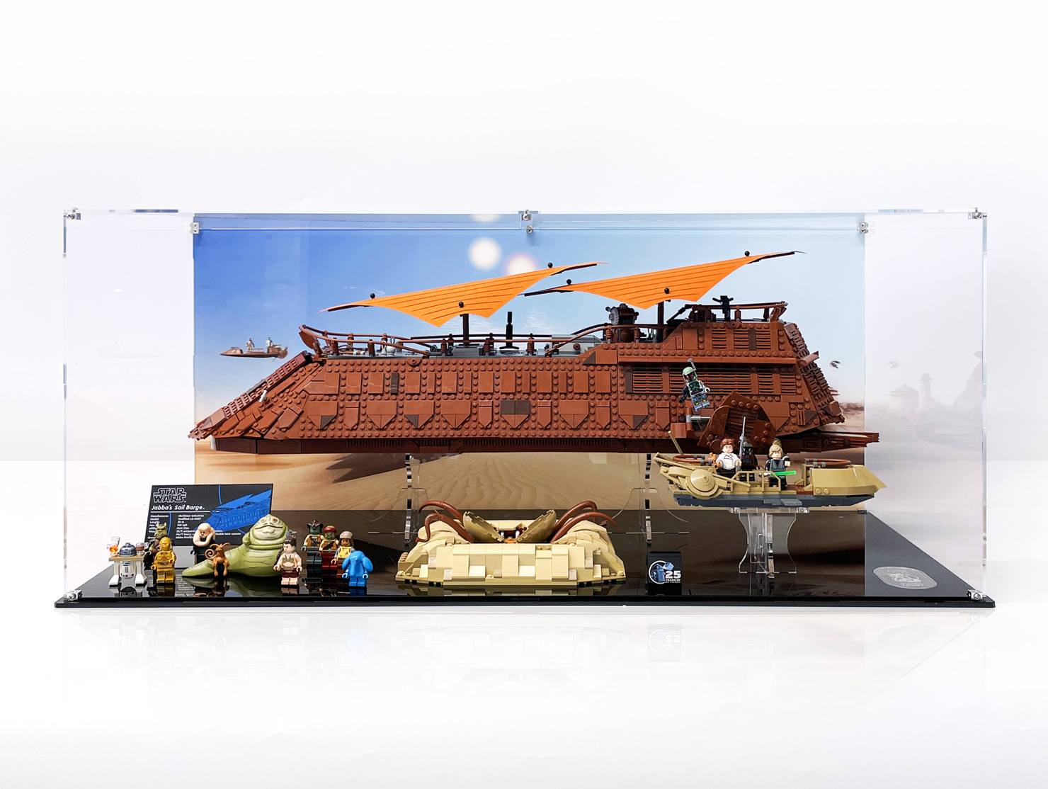Review this productDisplay your LEGO Jabba’s Barge and Skiff in a premium acrylic case featuring a vivid UV-printed Star Wars inspired backdrop and base.