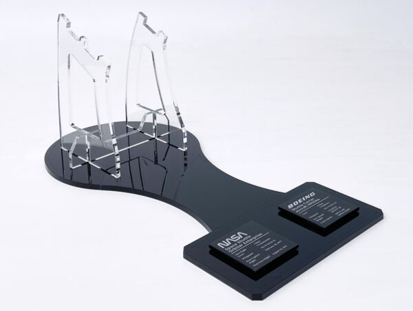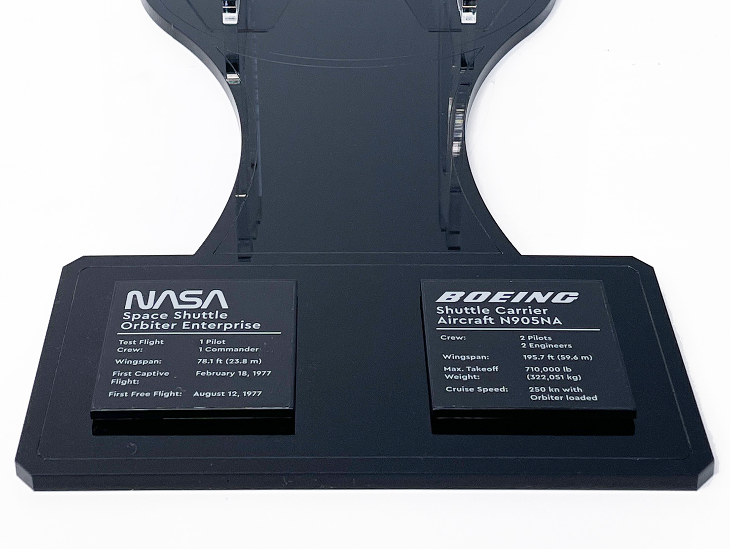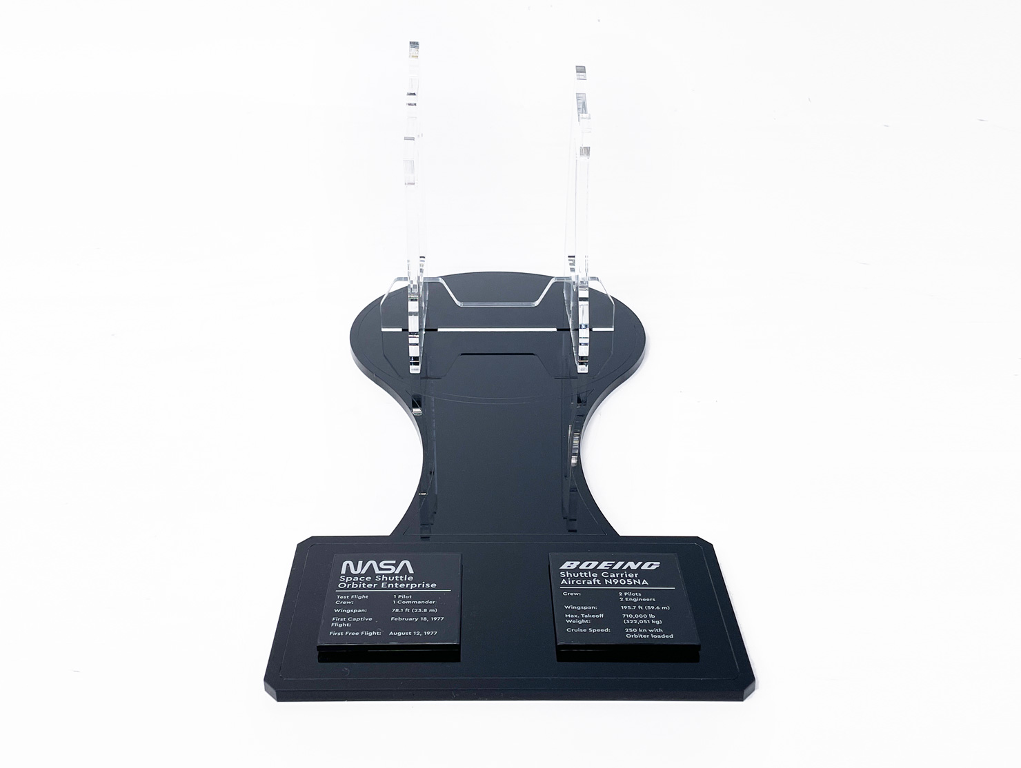Display your Shuttle Carrier Aircraft with a sleek custom stand, crafted for clean lines and maximum impact. The minimalist base keeps the focus on the model, highlighting its presence and enhancing the sense of flight.