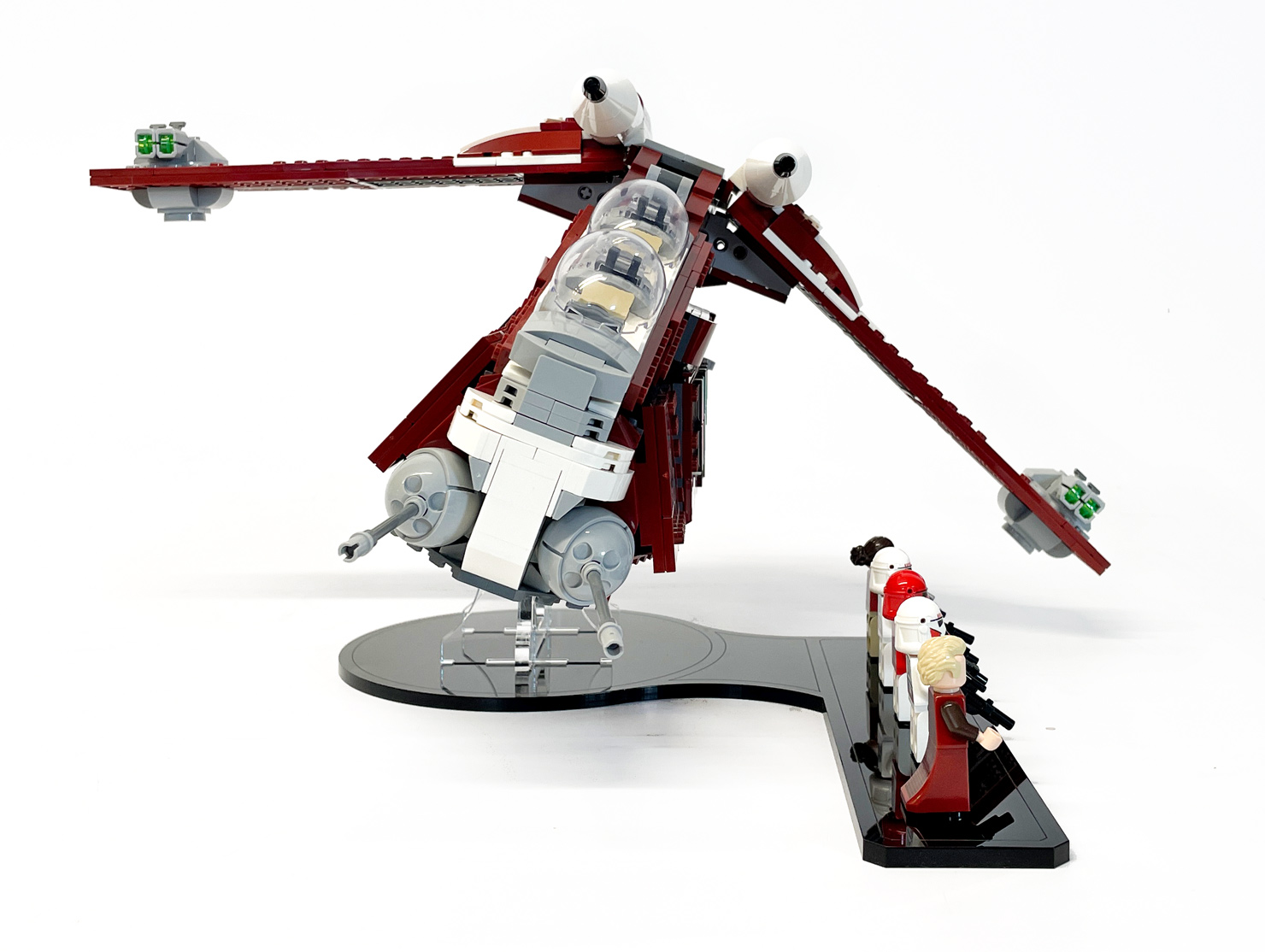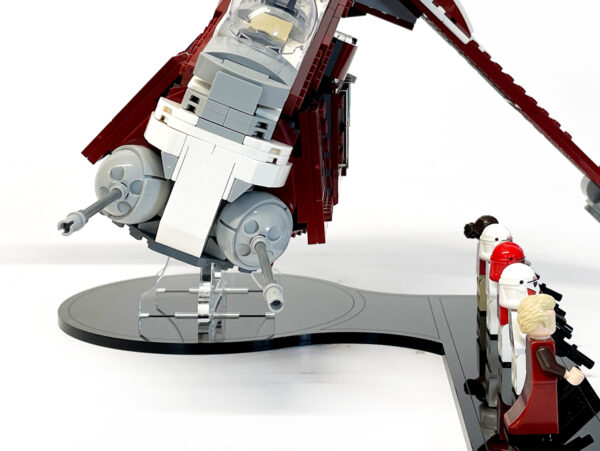 Bring the heart of the Republic home with a stand worthy of the Coruscant Guard Gunship™. This premium display stand elevates your set into a striking centrepiece, showcasing the power and presence of the Republic’s defenders. Designed to hold the gunship securely while highlighting its impressive form, the stand draws attention from every angle.