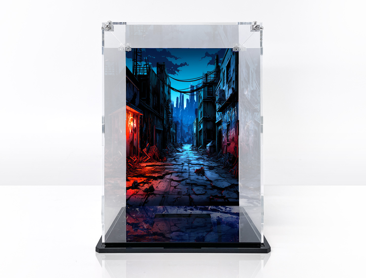 Inspired by the bold, graphic energy of the illustrated film, this striking display case celebrates the iconic mask of Miles Morales. Sharp line work, vivid colour blocking, and comic-book textures bring cinematic flair to a premium display piece, perfect for fans who want their collection to make a statement.
