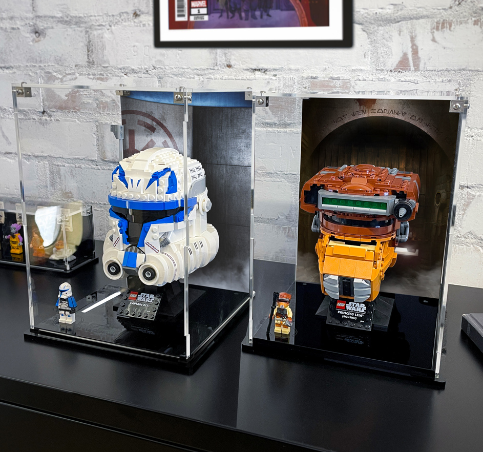 Crafted from premium, crystal-clear acrylic, our LEGO helmet display cases provide reliable protection against dust, scratches, and accidental damage. Tailored to fit LEGO® Star Wars™ and Marvel™ helmet sets, they not only keep your builds safe but also showcase them in a sleek, professional display that lasts for years.